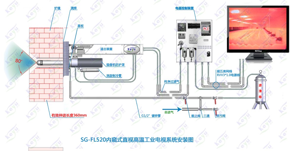 采用自動光圈的高溫針孔鏡頭,提高鏡頭對爐內(nèi)照度變化下的敏感度;鏡頭端面采用藍(lán)寶石制成,能耐600℃高溫,即使在意外情況下,也不致于燒壞鏡頭。