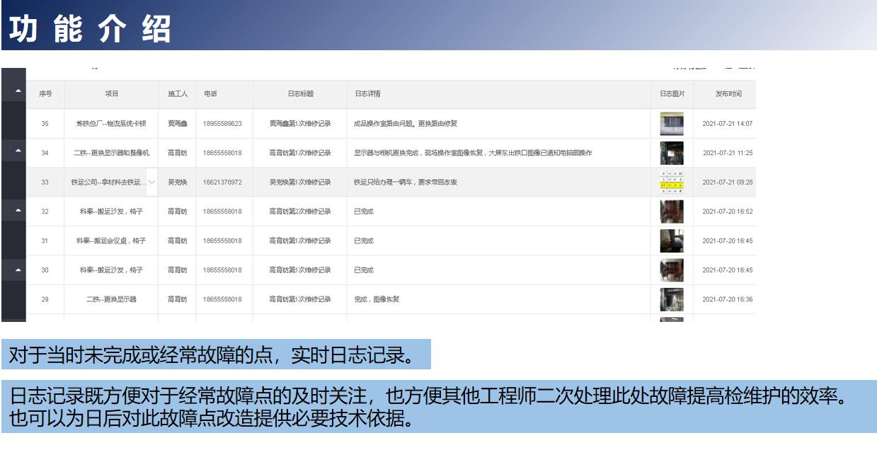日志記錄既方便對于經(jīng)常故障點的及時關(guān)注,也方便其他工程師二次處理此處故障提高檢維護(hù)的效率。也可以為日后對此故障點改造提供必要技術(shù)依據(jù)。